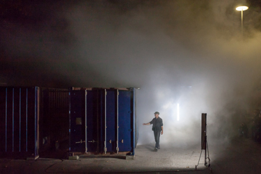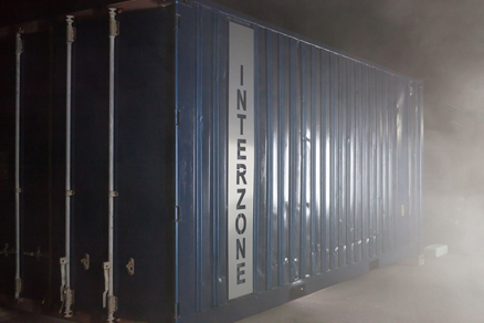 - zwei Container als inszeniertes Raumzeichen, als Schwelle und konkretes Portal zu einem virtuellen Terrain